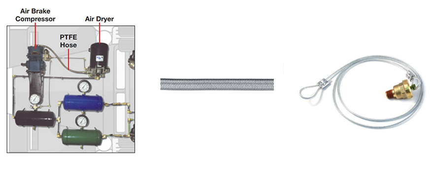 압축기 시스템은 압축기, 공기 건조기 및 연결 호스 또는 튜브의 세 가지 구성 요소로 구성됩니다. 압축기에 의해 생성 된 공기 흐름은 조절 될 때까지 사용할 수 없습니다. 원시 압축 공기에는 두 가지 문제가 있습니다. 먼저, 압축기에서 나오는 공기는 표준 튜브에 비해 너무 뜨겁다. PTFE 호스는 컴프레서를 건조기에 연결하는 데 사용됩니다. 온도는 최대 400 ° F의 온도를 처리 할 수 있습니다. PTFE 호스는 덮개와 보강재로 사용되는 스테인레스 스틸 브레이드로 식별 할 수 있습니다.