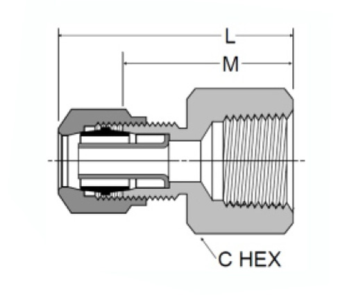 NPTFCL1466-4A1은 각 끝에 3/8 인치의 파이프 나사산, 1/16 인치의 너트가 측면에 포함 된 직선 엉덩이 컨소버입니다.